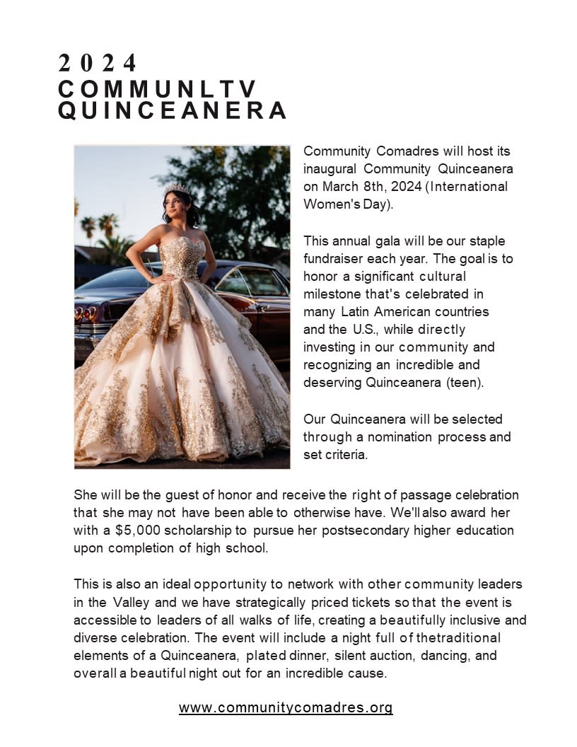 Community Comadres will host its inaugural Community Quinceañera on March 8th, 2024.