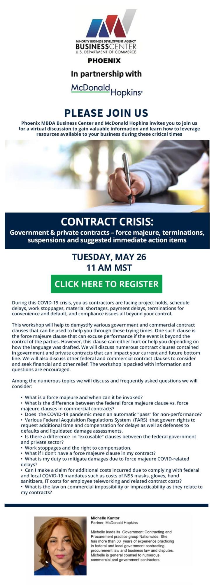 Contract Crisis: Government & Private Contracts - Force Majeure, Terminations, Suspensions and Suggested Immediate Action Items