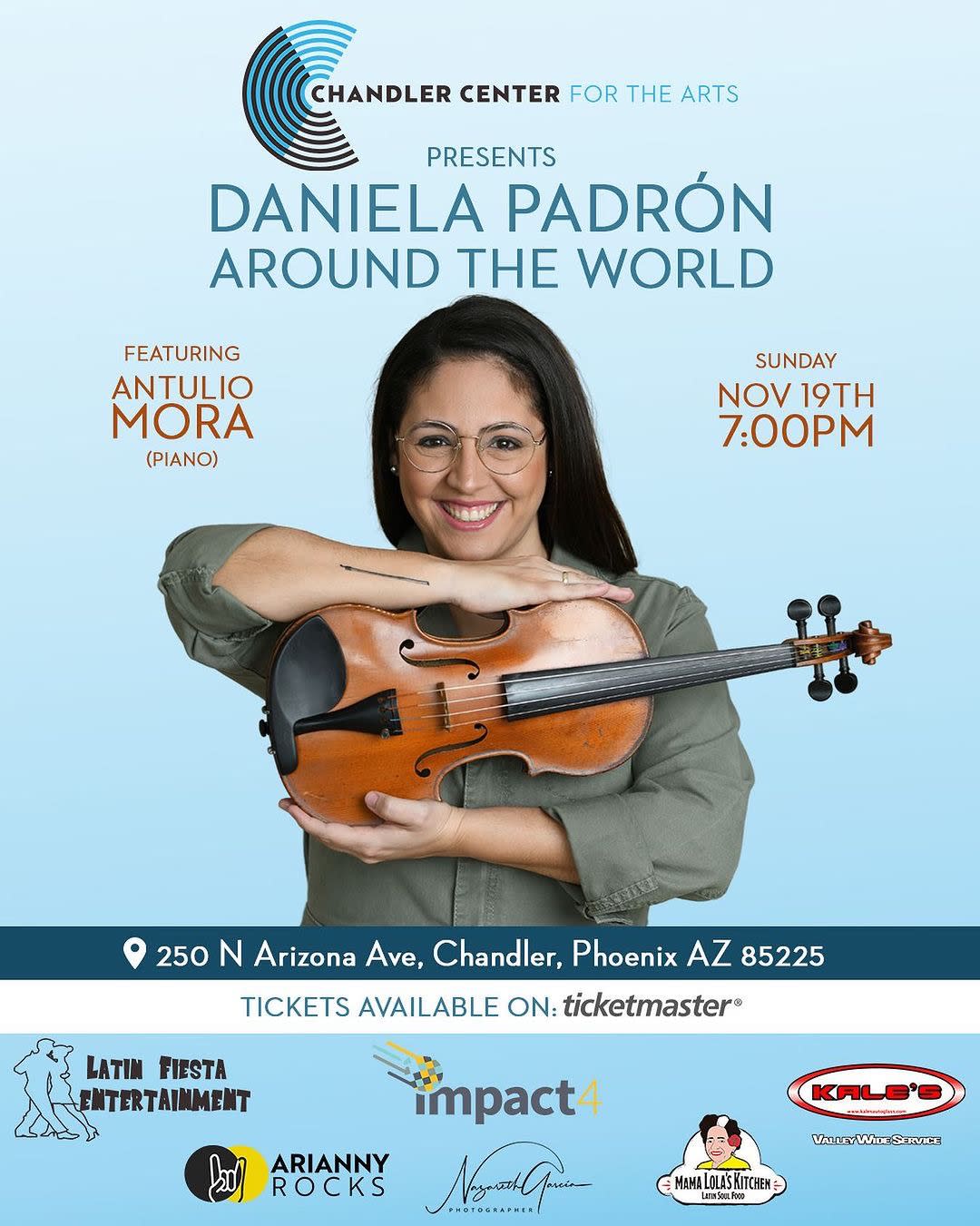 Una noche alrededor del mundo con la incomparable violinista Daniela Padrón y su colaborador el Maestro Antulio Mora, en un programa de violín-piano que te hará viajar desde el repertorio clásico europeo hasta el corazón de América Latina.