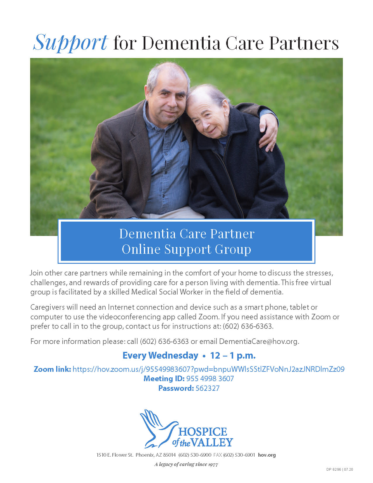 Join other care partners while remaining in the comfort of your home to discuss the stresses, challenges and rewards of providing care for a person living with dementia.