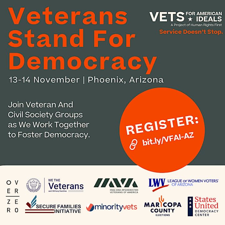 Join a community of veterans and advocates who are passionate about making a difference. Register today for Veterans Stand for Democracy: Arizona on November 13-14, 2023!