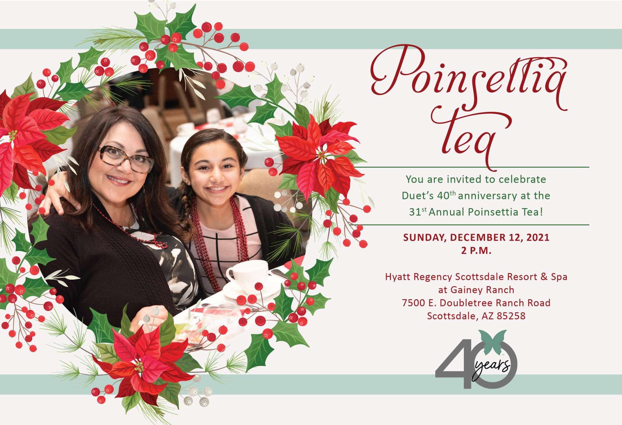 Tickets are on sale now for the 31st Annual Poinsettia Tea on Sunday, December 12 at 2 p.m. View and bid on silent auction packages starting Monday, December 6. Enjoy scrumptious scones, tasty tea sandwiches, and delectable desserts with a selection of teas. Listen to the upbeat, jazzy sounds of The Liam Connor Trio. Support a premier local charity that does tremendous work for aging adults in the Valley. BUY TICKETS