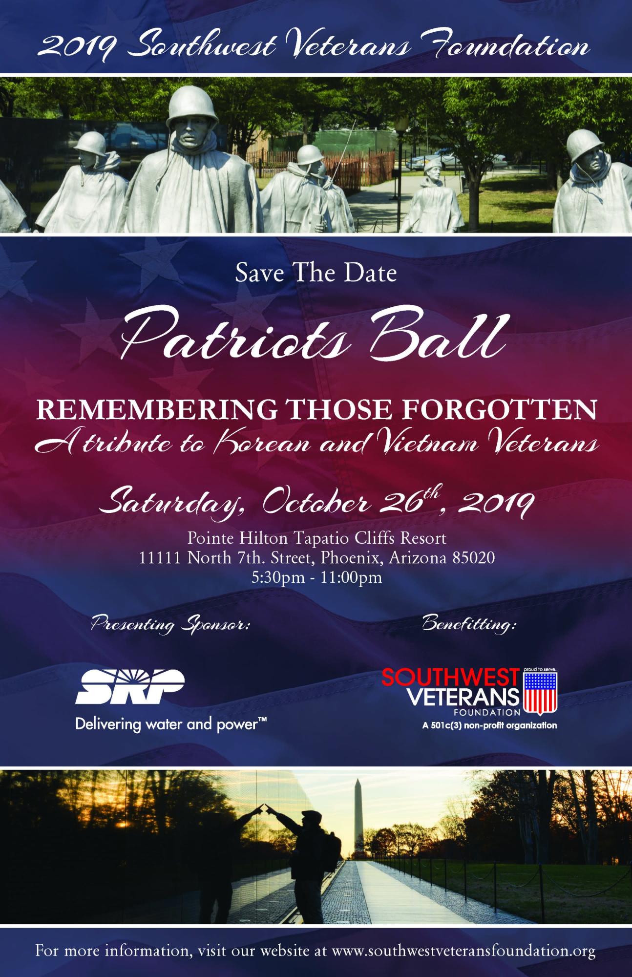 5th Annual Patriots Ball Back to Search 5th Annual Patriots Ball Saturday, October 26, 2019 (5:30 PM - 11:00 PM) (MST) Description Additional Info × Pointe Hilton Tapatio Cliffs Resort 11111 North 7th Street Phoenix, AZ 85020 United States Saturday, October 26, 2019 (5:30 PM - 11:00 PM) (MST) Categories Fundraiser Community Event Registered Guests × Share × Print Email Add to Calendar Facebook LinkedIn X Pinterest Powered By GrowthZone