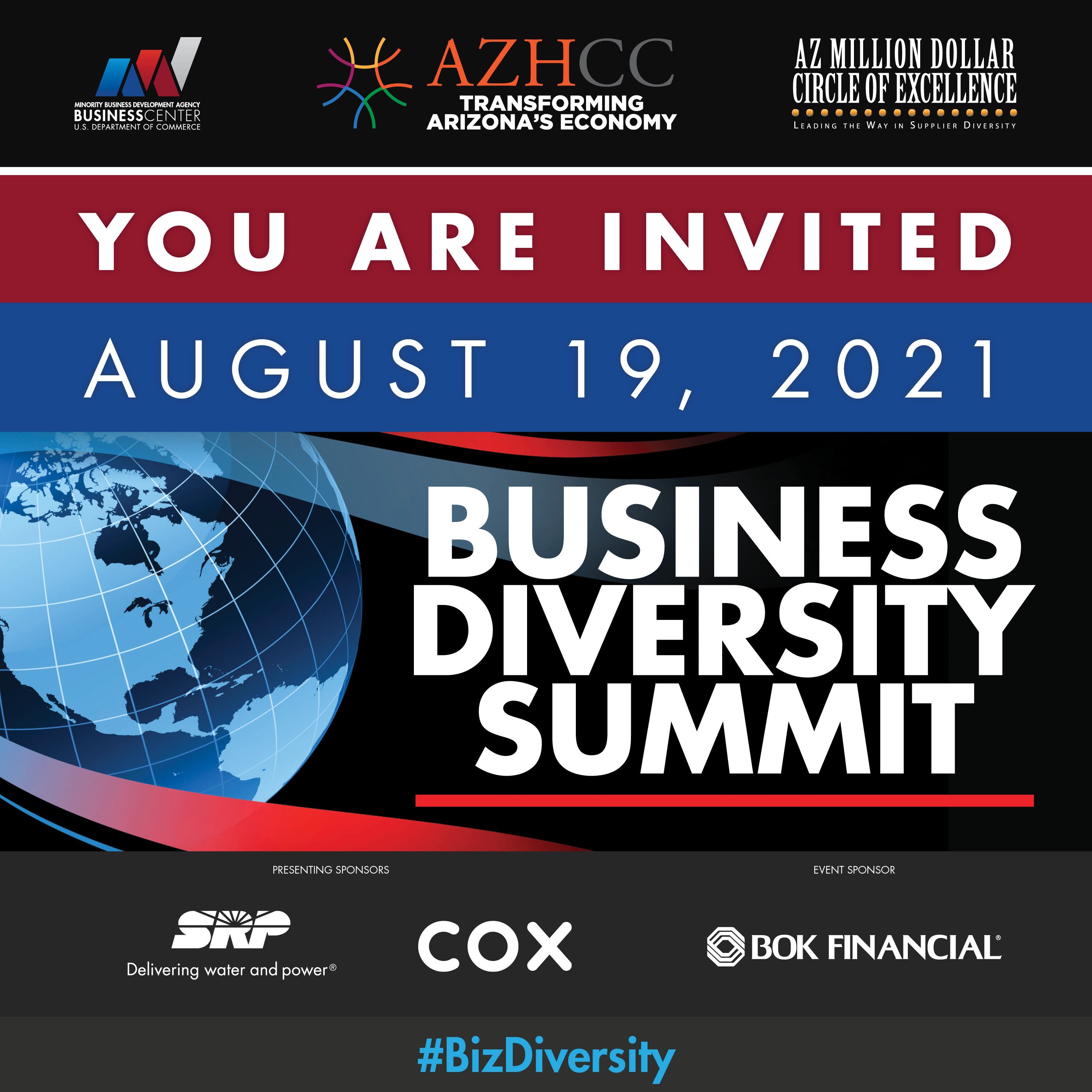 The Phoenix Minority Business Development Agency (MBDA) Business Center and the Arizona Hispanic Chamber of Commerce will celebrate the 10th Annual Business Diversity Summit on Thursday, August 19, 2021, in a virtual format. The event recognizes Minority-owned Businesses and Diversity Spend in Arizona. Join more than 500 of the state’s entrepreneurs and procurement executives, community leaders, industry leaders, and public officials as they share the latest business insights and best practices on diversity and inclusion. Major components include the annual inductions into the Arizona Million Dollar Circle of Excellence and the presentation of the annual Phoenix Minority Business Enterprise Awards.