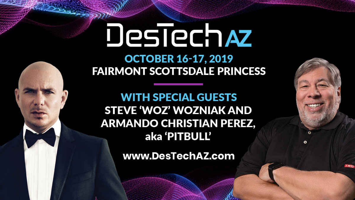 Join us at DesTechAZ, Arizona’s Signature Tech Event as Steve ‘Woz’ Wozniak, Armando Christian Perez aka ‘Pitbull’, NASA, Meow Wolf & Hanson Robotics take the stage October 17th at Fairmont Scottsdale Princess for up close discussions on innovations in space, AI, social media, entertainment, education and more.