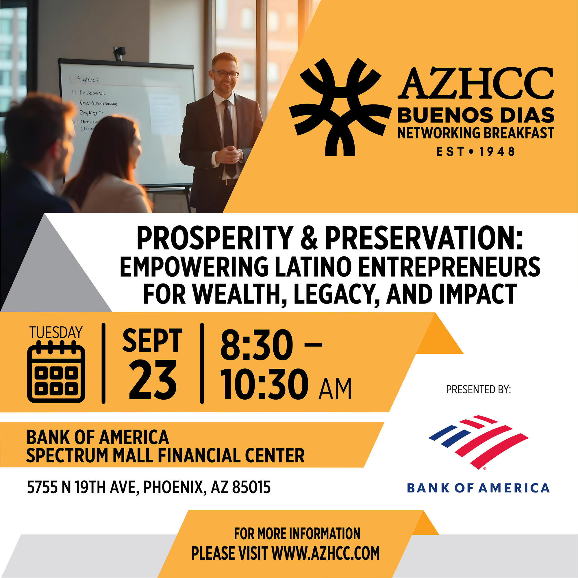 Prosperity & Preservation: Empowering Latino Entrepreneurs for Wealth, Legacy, and Impact in 2025 and beyond. The Bank of America team is looking forward to meeting you and learning how they can empower you on your financial journey.