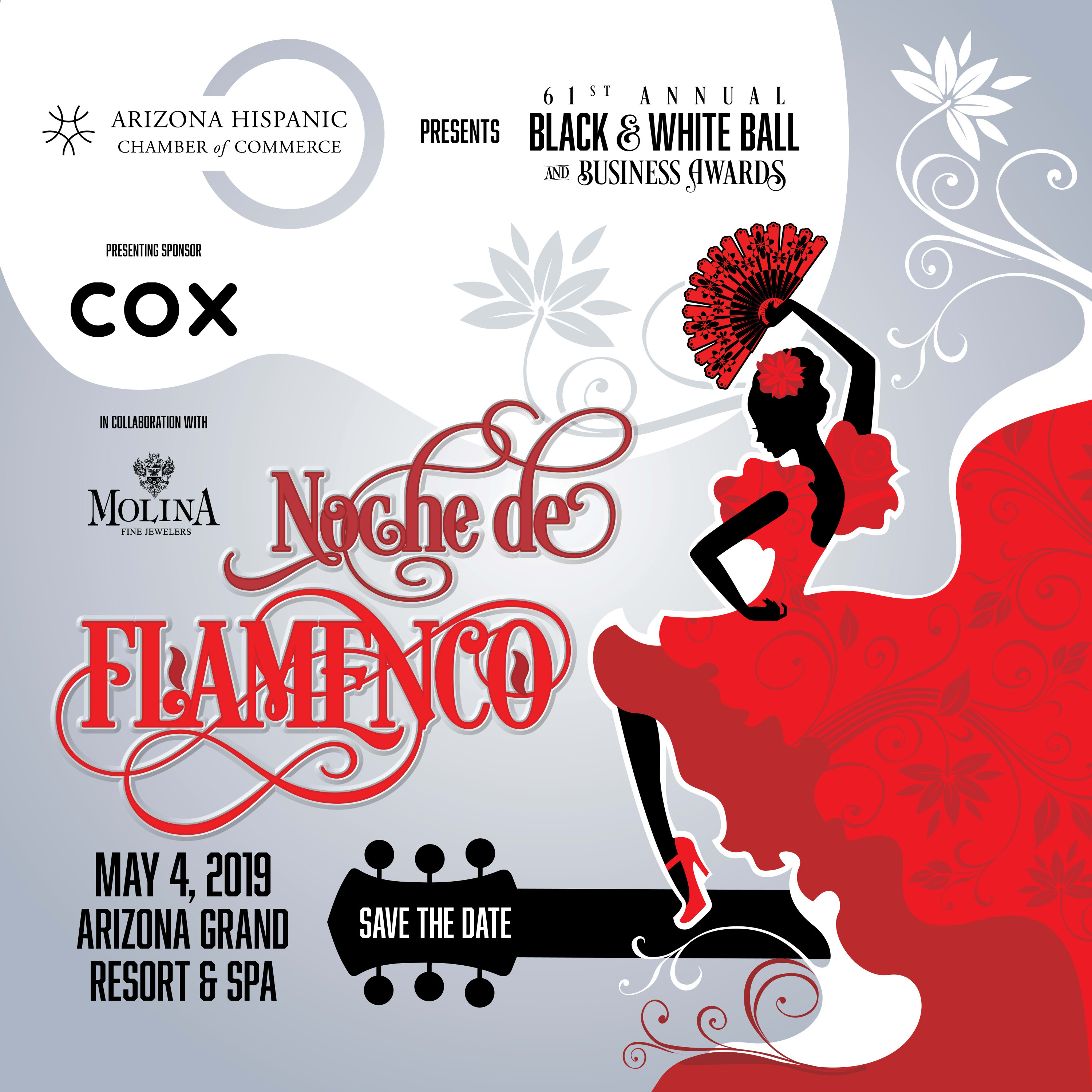 Join us on Saturday, May 4, 2019 at the Arizona Grand Resort & Spa for the Arizona Hispanic Chamber of Commerce’s Noche De Flamenco - 61st Annual Black & White Ball and Business Awards! This formal gala is the longest running event of its kind in the valley and if you have not attended a Black & White Ball, now is your chance! We are expecting another SOLD OUT crowd so get your tickets early!