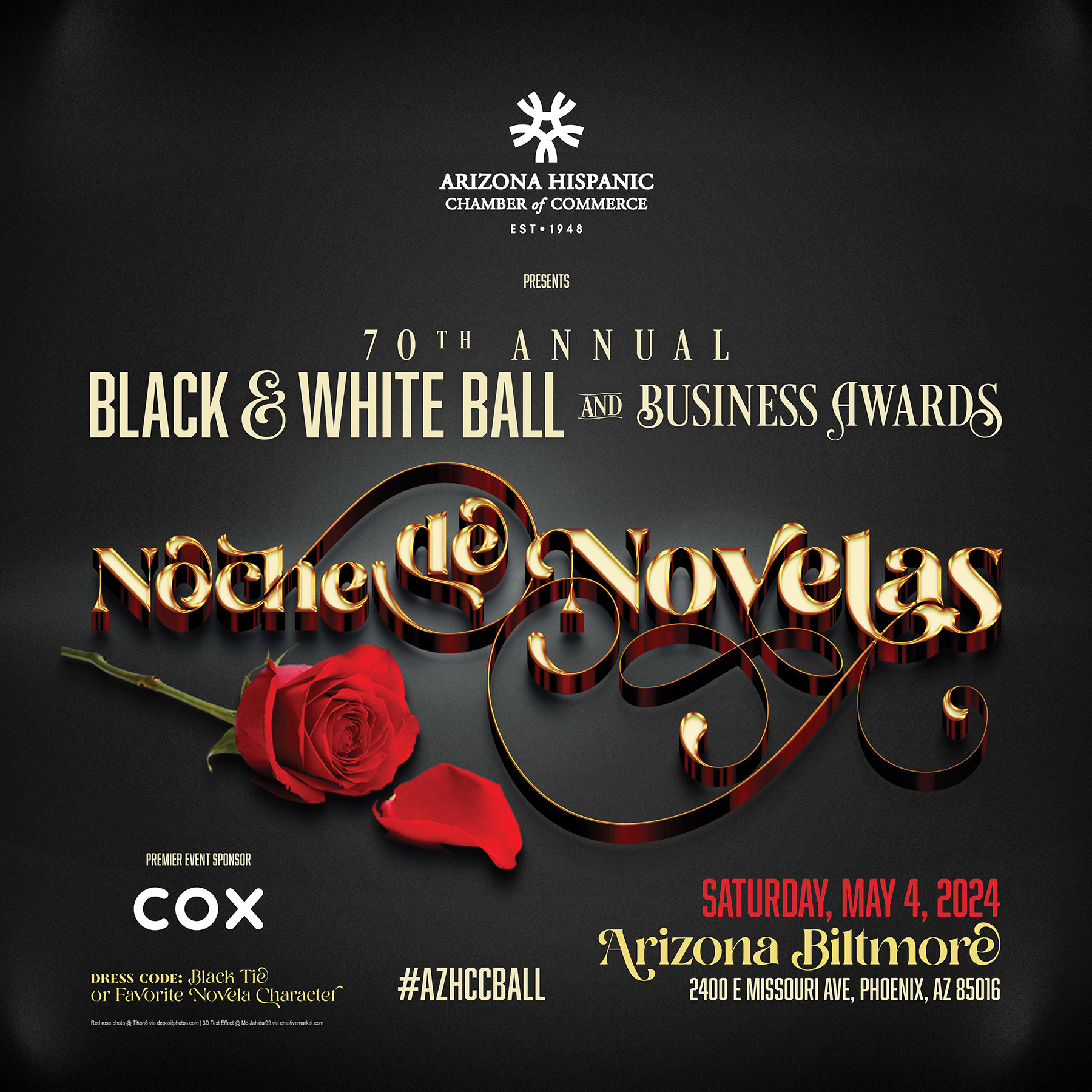 The Arizona Hispanic Chamber of Commerce (AZHCC) is proud to host the longest-running formal gala in the state. Our 70th Annual Black & White Ball and Business Awards promises to deliver a spectacular evening at the Arizona Biltmore on Saturday, May 4, 2024.
