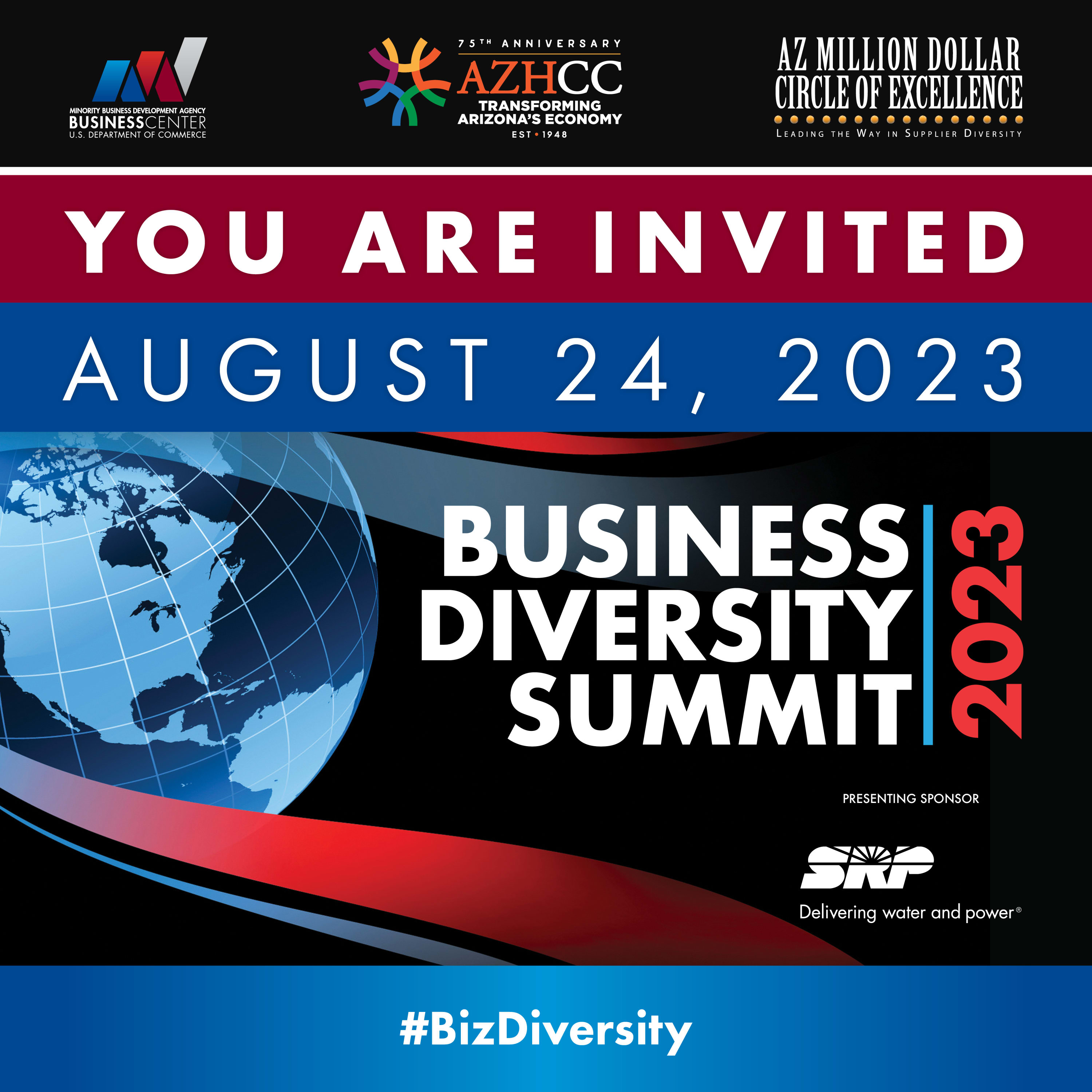 The Arizona Minority Business Development Agency (MBDA) Business Center and the Arizona Hispanic Chamber of Commerce will celebrate the 12th Annual Business Diversity Summit on Thursday, August 24, 2023, in a virtual format.